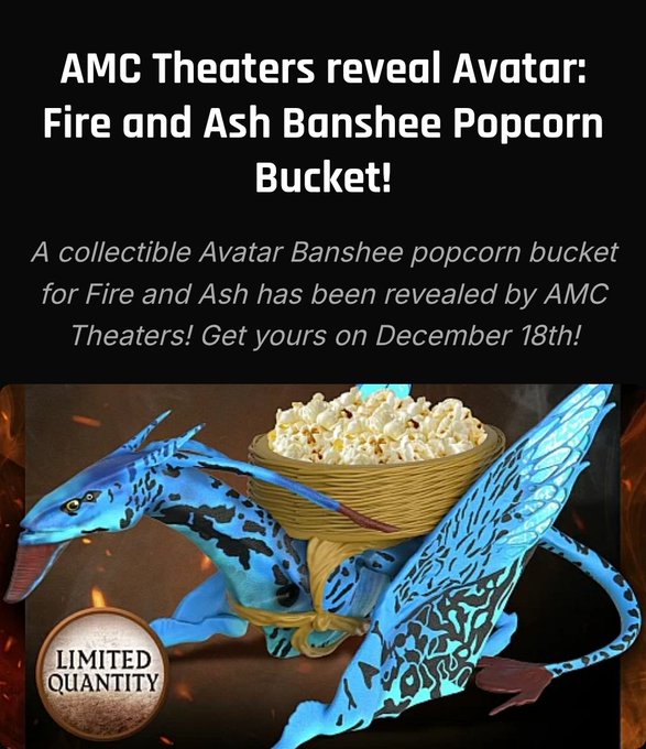 @scifiedcom AMC Theaters reveal #Avatar: Fire and Ash Banshee Popcorn Bucket! scified.com/news/amc-theat…